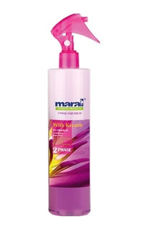 سرم مو دو فاز مارال یک ماسک خاص برای ساقه های مو است. این سرم حاوی ترکیبات متنوعی نظیر پروتئین ابریشم، کراتین، سرامید، عصاره آلوورا، سیلیکون و... می باشد. این ترکیبات با ویژگی های خاصی که دارند زیبایی موها را به ارمغان می آورند. از جمله ترکیبات ویژه و خاص موجود در این سرم ، پروتئین ابریشم است که حالت ابریشم مانند به ساقه های مو داده و احساس رضایت وصف ناپذیری برای ساق های مو به همراه دارد. کراتین موجود در سرم ، افزایش استحکام و مقاومت تارهای مو را در برابر عوامل آسیب رسان، موجب می شود. در کنار این ترکیبات، استفاده ی هوشمندانه ازآۀوورا و سرامید، نرمی و انعطاف پذیری موها را موجب شده که باعث رفع مشکلاتی نظیر خشکی، گره خوردگی و عدم حالت پذیری مو می شود. سلیکون موجود در سرم مو دو فاز، یک ساختار شبکه مانند بر روی ساقه های مو ایجاد کرده که باعث درخشندگی چشم نواز در موها می شود.سرم دو فاز آلوورا یک محصول ویژه برای افزایش درخشندگی، نرمی، شانه پذیری و حالت پذیری موها می باشد.مشخصه ها :- افزایش درخشندگی، لطافت، حالتپذیری، شانهپذیری و زیبایی موها - رطوبترسانی مؤثر و افزایش نرمی و انعطافپذیری مو بدون ایجاد حس چربی - محافظت از موها در برابر عوامل آسیبرسان