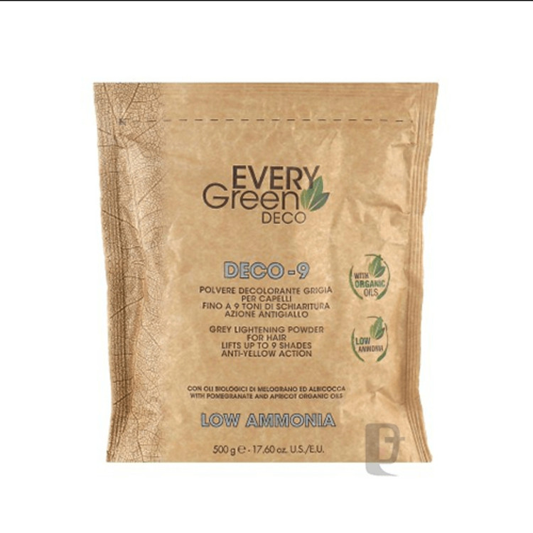 پودر دکلره گیاهی دیکسون Dikson Deco-9 500ml از برند ایتالیایی است که نامش همیشه با محصولات حرفه ای مراقبت از مو چه برای مصارف حرفه ای و چه شخصی در آمیخته است. فرمولاسیون بدون گرد و غبار این پودر دکلره، باعث جلوگیری و کاهش حساسیت های پوستی و تنفسی می شود. کراتین موجود در این محصول به عنوان پروتئینی که در ساختار طبیعی مو نقش دارد نقش محافظتی از مو را داراست. کراتین از مو در مقابل مواد شیمیایی و آسیب های فیزیکی محافظت می کند و باعث بهبود خاصیت ارتجاعی مو می شود. این محصول به خوبی با تمام اکسیدان ها ترکیب می شود. این پودر رنگ بنفش دارد و موها را تا 9 پایه روشن می کند.