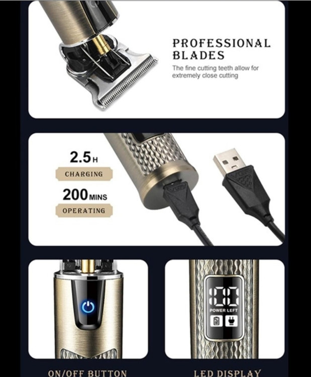 دارای خاصیت طراحی ارگونومیک, اصلاح حرفه ای, باتری 2000 میلی امپری, تیغههای سرامیکی و استیل ضدزنگ, نشانگر میزان شارژ زمان مصرف در مواقع نیاز نحوه مصرف در توضیحات محصول نوع بستهبندی کارتن