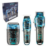 برند : وی جی آر VGR سازنده : چین نوع باطری : لیتیوم جنس تیغه : فولاد ضد زنگ قابلیت : ضد آب وسایل همراه : برس تمیز کننده، روغن ،کیف، کابل شارژر، درپوش محافظ نمایشگر: LED تعدتد شانه : 3 عدد : 3دستگاه