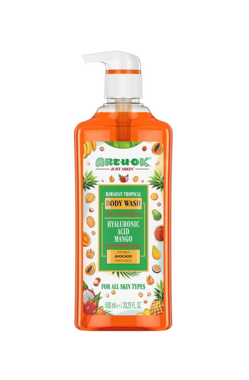مناسب انواع پوست با رایحه میوه های استوایی شوینده و پاک کننده ملایم پوست بدن افزایش طراوت، نرمی و لطافت پوست بعد از شستشو حاوی هیالورونیک اسید، عصاره انبه، آووکادو، ویتامین E و پانتنول صادر کننده مجوز سازمان غذا و دارو: 600میل