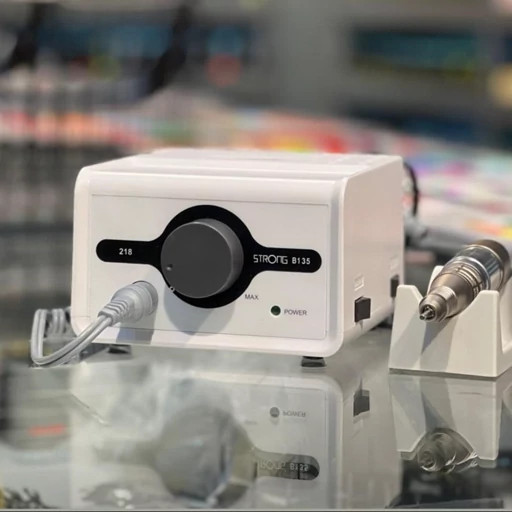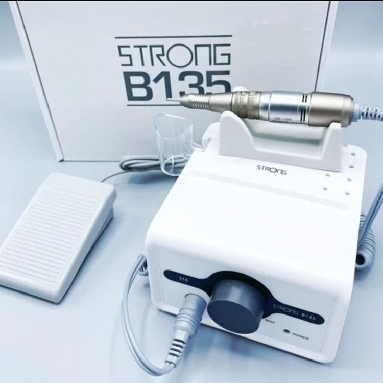 سوهان برقی ناخن استرانگ اورجینال مدل b135 یا همان استرانگ 218 ساخت کمپانی نام آشنای SAESHIN در کره جنوبی می باشد. این دستگاه دارای ترانسی قدرتمند است که هندپیس را تا 35000 دور در دقیقه ساپورت می نماید.دسته استرانگ مدل 218 بر روی این دستگاه قرار گرفته است. این دسته گردشی معادل 40000 دور در دقیقه و وزنی حدود 200 گرم برخوردار است.