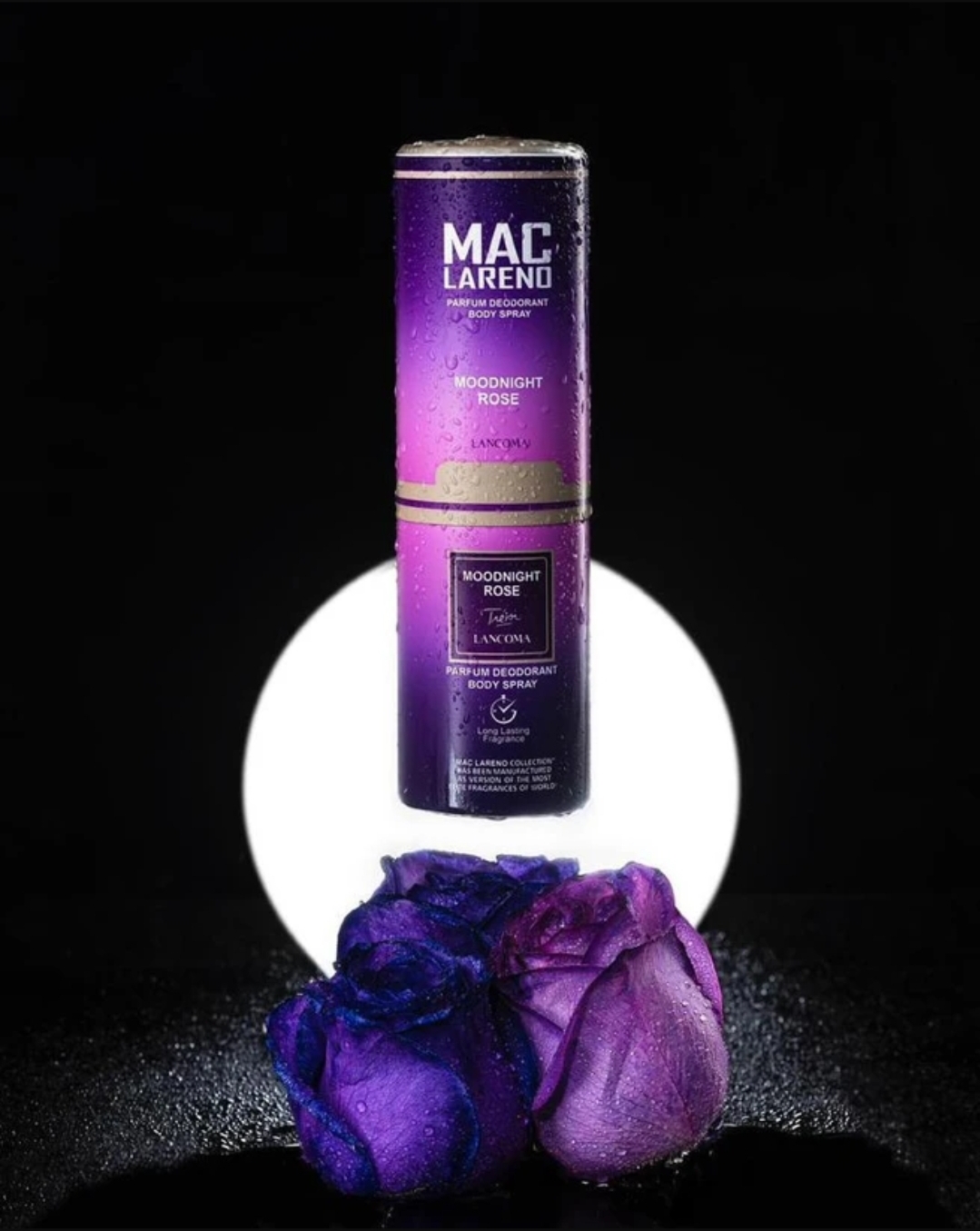 اسپری پرفیوم دئودورانت بدن مک لارنو با رایحه(میدنایت رز لانکوم)با حجم ۲۰۰میل